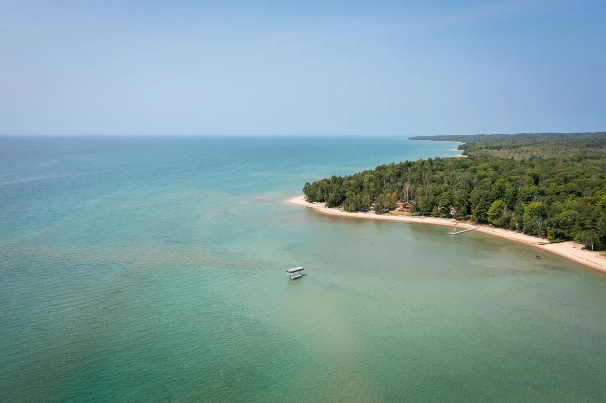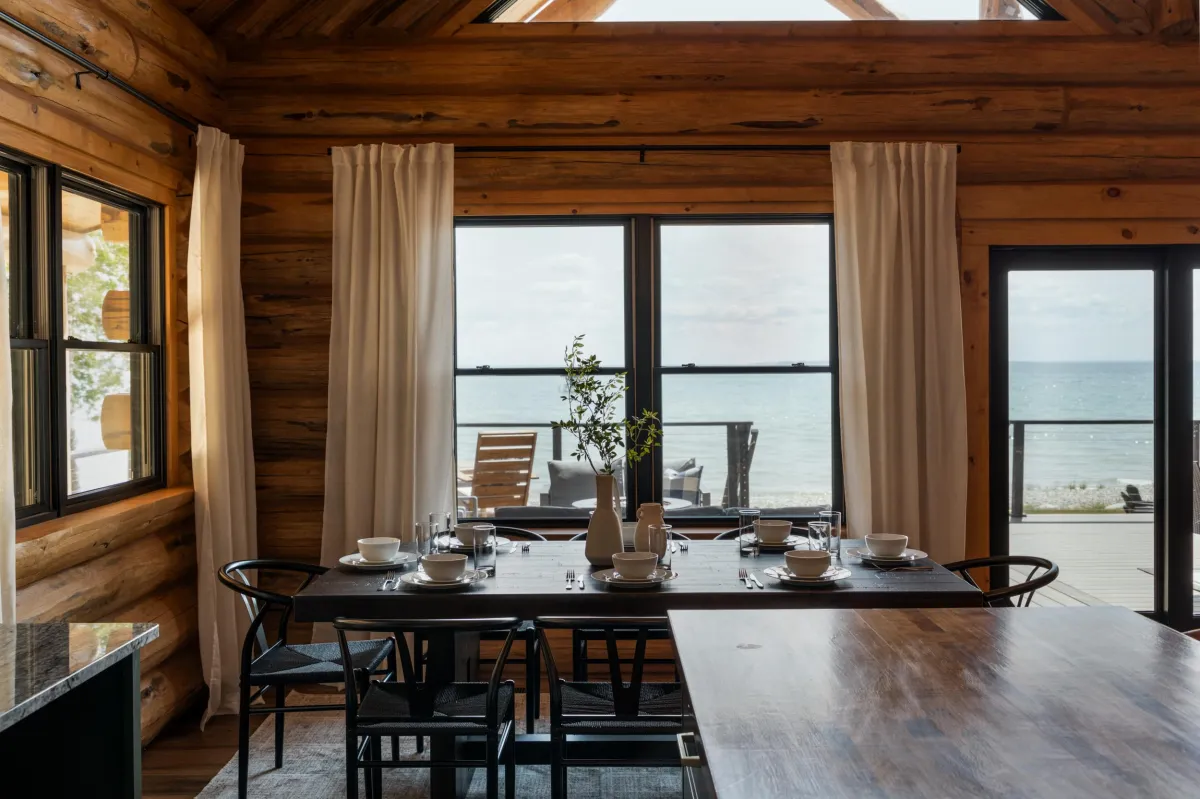Experience the ultimate blend of rustic charm and modern sophistication in a newly crafted log home set along 100 feet of private Lake Michigan shoreline in Northern Michigan!
